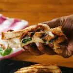 - Place bread on grill pan and start layer with 4 to 5 slices of mozzarella, 4 basil leaves, sliced balsamic chicken, 1/4 cup sun-dried tomatoes, another layer of mozzarella. Top with remaining slice of bread. Place a flat pan on top of the bread, then firmly apply pressure. Toast for 3 to 4 minutes, then flip sandwich and repeat the process until the bread is golden brown and the cheese has melted, 9 to 10 minutes in total. Repeat for the remaining 3 sandwiches, then cut on a diagonal and serve.