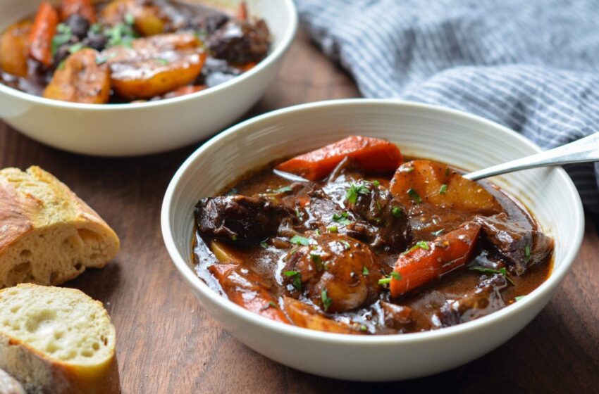 This classic French beef stew is the ultimate cold weather comfort food. After a few hours in the oven, the meat becomes meltingly tender and enveloped in a rich wine sauce.