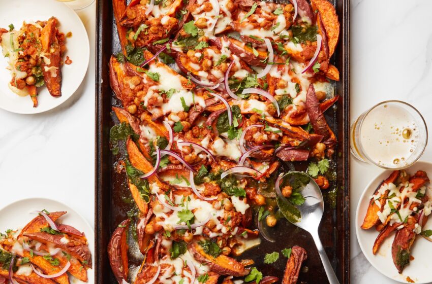 - Sprinkle two thirds of cheese over reserved sweet potato fries, then spoon a generous layer of chana masala over. Sprinkle with remaining cheese. Return fries to oven and bake until cheese is melted, about 5 minutes.