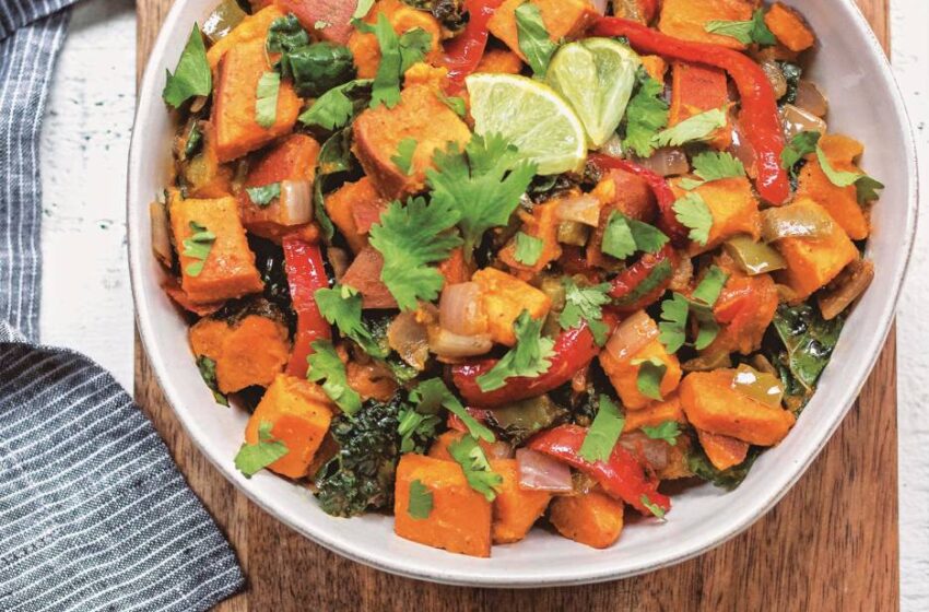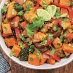 - To make Sweet Potato Salad: Add sweet potatoes, onion, bell peppers, and cilantro to a 6-quart slow cooker and give vegetables a quick stir to combine. Mix chili powder, garlic powder, paprika, salt, and chipotle powder in a small dish.