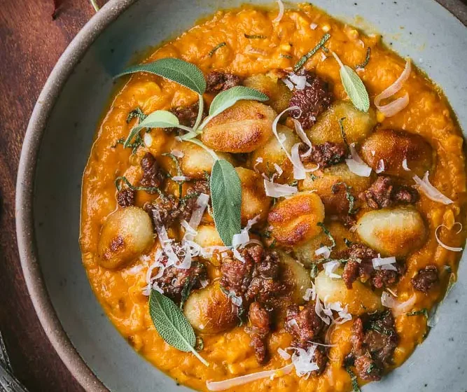 Crispy Gnocchi and Sausage with Creamy Pumpkin Sauce [Video]