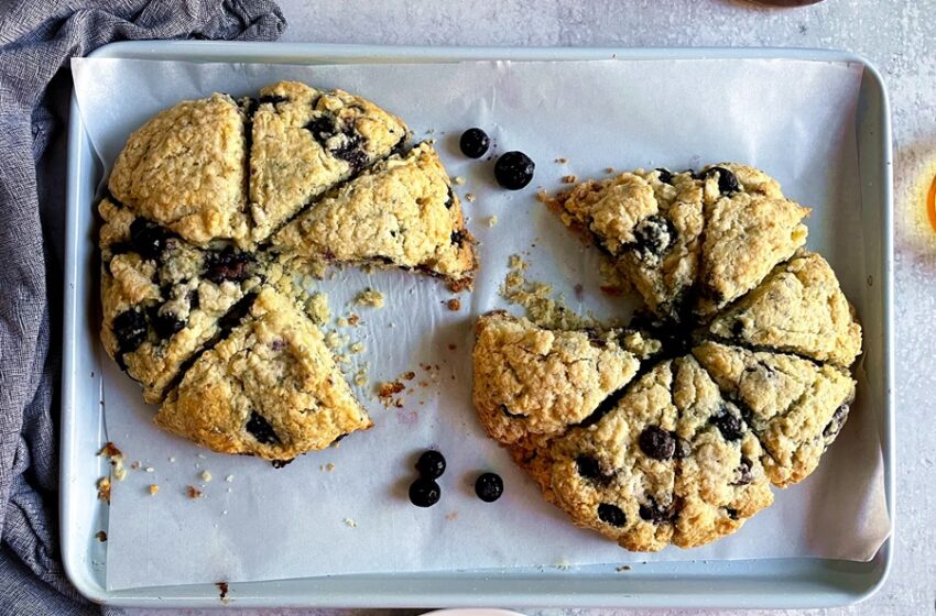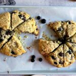 These easy blueberry scones are the kind of breakfast or afternoon treat that you can make from start to finish in under an hour. They’re buttery and delicious, studded with fresh berries, and easily adaptable for any kind of fresh or dried fruit you have on hand.The key to making a great scone with a tender crumb and crisp exterior is to employ a gentle hand and as little liquid as possible. You want to stir and shape the dough only enough to form a rough circle that holds together. And the amount of liquid should be just enough to moisten the dry ingredients. Any more and the scones will be doughy. But fear not! These scones are tender, delicious, and very easy to throw together.