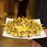- Next, skewer one extreme end of the anchovy fillet, followed by the guindilla peppers.
