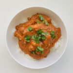 - Serve over rice, and top with cilantro.