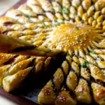 - Remove tart from oven, let cool on baking sheet for 10 minutes then transfer to a serving platter. Tear off rays of sun, dip in whipped feta; repeat as needed.