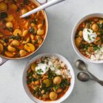 Plush baby potatoes braised in an aromatic gochujang broth form the heart of this satisfying, vegetable-packed stew. The spice-timid can lower the amount of gochujang, the Korean red-pepper paste, and heat seekers should feel free to add more to taste at the end. Canned white beans and dark-green Tuscan kale (also called lacinato or dinosaur kale), stewed with soy sauce and honey, create a deeply savory flavor that is reminiscent of South Korean gochujang jjigae, a camping favorite starring pantry staples, and dakdori tang, a gochujang-based chicken and potato stew.