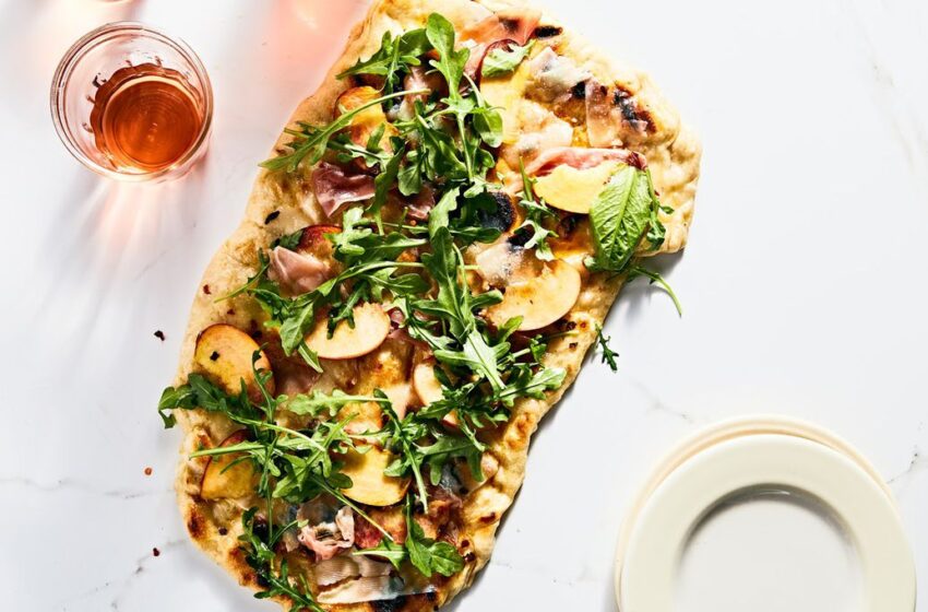 Grilled Pizza with Peaches, Prosciutto, and Arugula