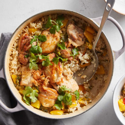 - Preheat oven to 350°F (if baking immediately). Grease a 9"×13" pan or a 3qt baking dish or spray with cooking spray.