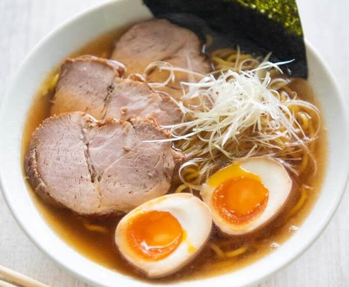 Shōyu Ramen Noodles and Toppings (note 7)