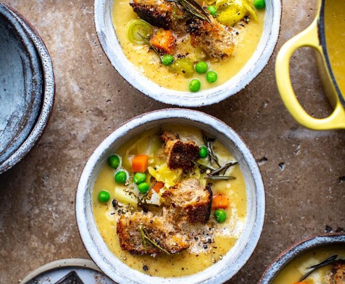 Irish Farmhouse Vegetable Soup with Rosemary Croutons