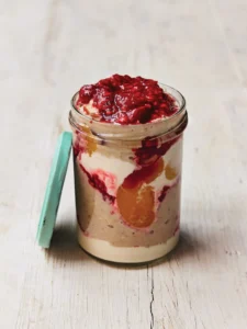 - Layer them up in a jar or pot with the Mothership overnight oats, peaches and yoghurt.