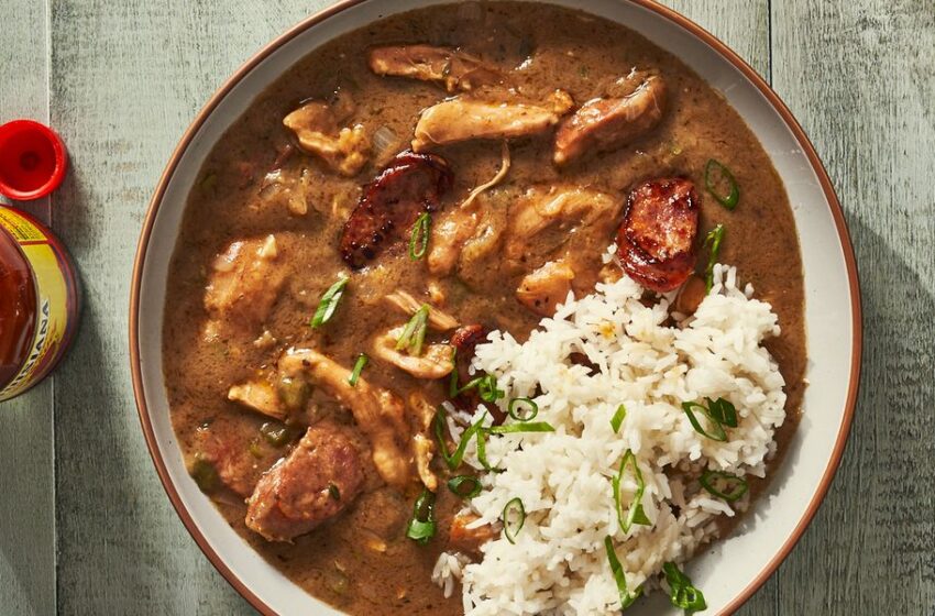 - Serve the Gumbo in a bowl with rice and maybe a shot of tabasco sauce and a scattering of thinly sliced scallions as a garnish.