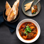 - Transfer the beef stew to serving plates and top with coriander. Serve with a chunk of baguette and/or steamed rice.