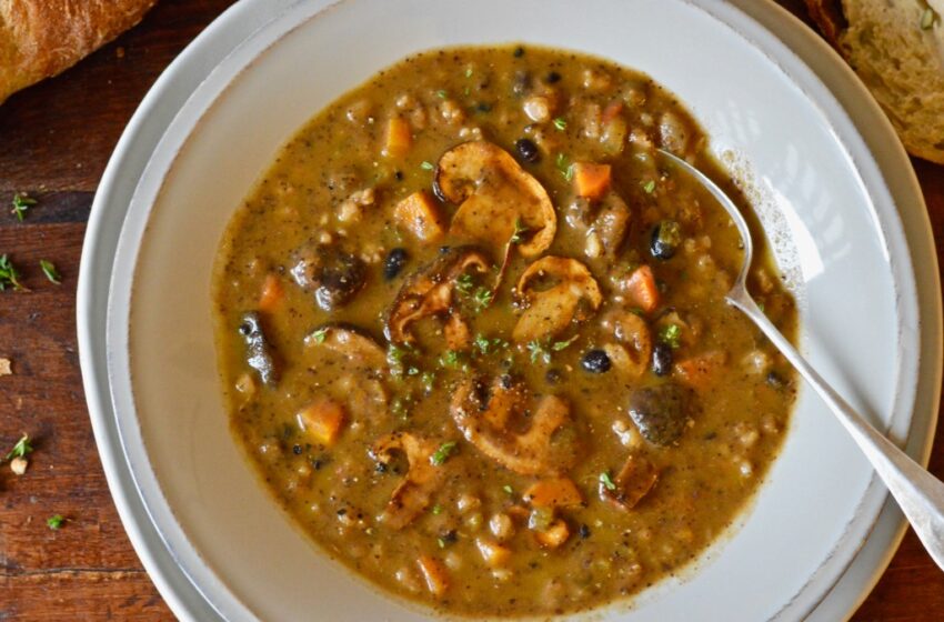 Mushroom, Black Bean and Barley Soup [Vegan, Dairy-free]