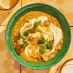 - Once the curry is done, serve in 4 bowls and stir in a swirl of yogurt dressing on top of each.
