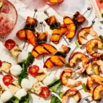 (Pintxos are the Basque version of Tapas.)These simple, one-bite snacks are quick to assemble and grill just as your guests arrive. Sticky-sweet pork belly; tender, meaty shrimp; and bright, quick-pickled tomato variations offer something for everyone at the cookout.