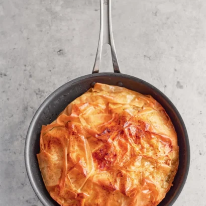 Option 1: Crispy Potato Tart with Spinach and Cheese: This tart is a fresh alternative to the classic pastry base, where a crispy potato base holds the filling. (4 servings)