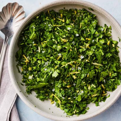 - In a large bowl, whisk together the olive oil, rosemary, and garlic. Add the parsnips and toss to coat. Add the gremolata and lemon juice and toss again. Season to taste and serve. Enjoy!