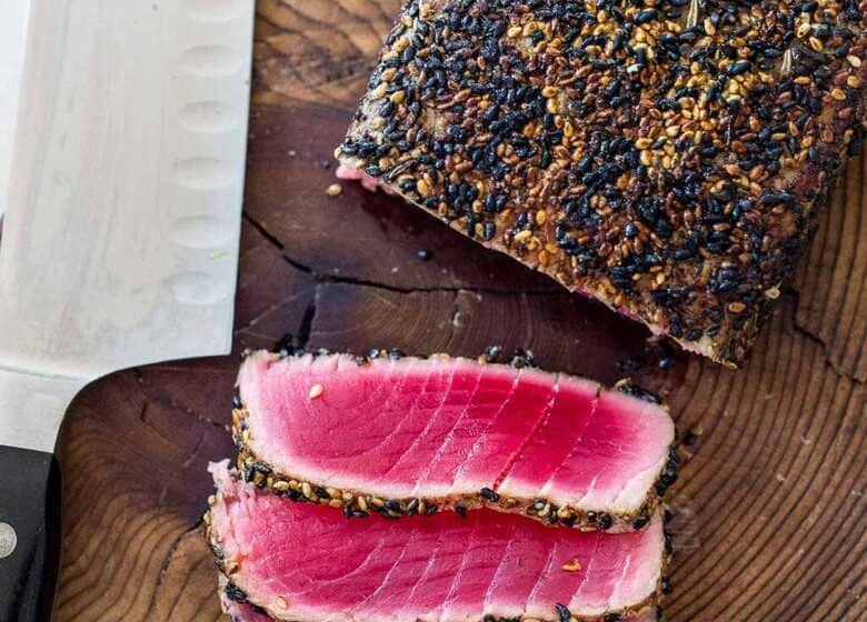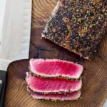 Learn the secret to making perfectly Seared Tuna with a Sesame Seed Crust in just 10 minutes flat. A healthy, delicious ahi tuna recipe that is flavorful and easy to make.