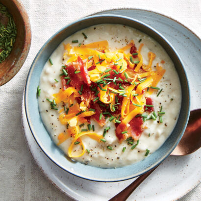 - 3 Tbsp. chopped fresh herbs such as chives, cilantro, and parsley, plus more for garnish