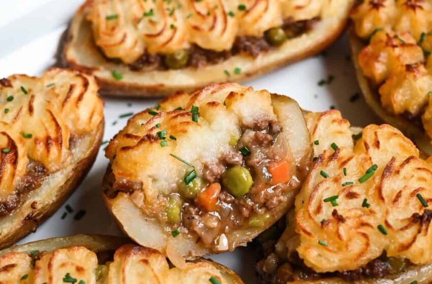 Easy and flavorful beef Shepherd's Pie filling is stuffed inside of a baked potato, topped with creamy parmesan mashed potatoes, and baked to golden brown, delicious perfection! This is the ultimate cozy fall comfort meal that the whole family will love.