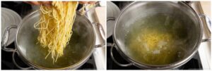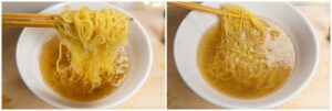 - Drain the noodles, shake off the excess water, and transfer to the individual bowls filled with hot broth.