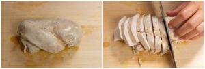- Cut 1 Chicken Chashu into thin slices, about ¼ inch (6 mm) thick.