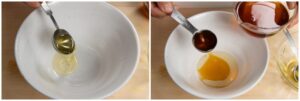- In each ramen bowl (the typical size is 850–1000 ml), add 2 Tbsp Shio Tare and 1 Tbsp aroma oil. As I explained in the “To Make the Shio Tare“ section, the saltiness in the Shio Tare may vary. You will need to test the perfect ratio of your soup, Tare, and oil a few times. My formula is 2 Tbsp Shio Tare, 1 Tbsp aroma oil, and 350 ml ramen broth (using the ramen bowl I have).