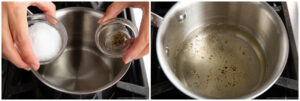 - In a small pot, combine 2 cups water, 2 Tbsp Diamond Crystal kosher salt, and freshly ground black pepper. I recommend using a small pot instead of a large one so you don‘t need much liquid. If you have to use a large pot, double the amount of water, salt, and pepper. Bring the liquid to a boil.