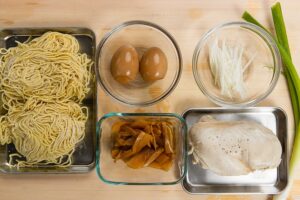 - 1 Chicken Chashu (for vegetarian/vegan, grill king oyster mushrooms, eggplant, or fried tofu)