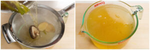 - After steeping, reserve the specified amount of this dashi (½ cup, 120 ml) for making the Shio Tare later. Set it aside.