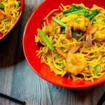 Singapore Noodles with Shrimp and Marinated Chicken