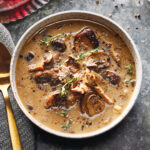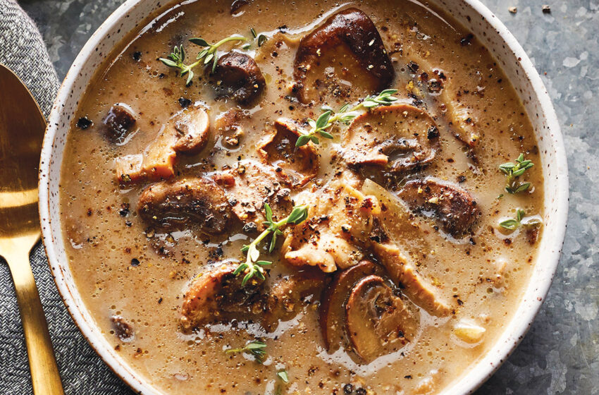 This comforting and creamy slow-cooker soup is loaded with earthy, umami flavor from the mushrooms and soy sauce.  Puréeing only some of the slow-cooker mushroom soup gives the dish complex texture and eye appeal. Garnish with additional black pepper and chopped fresh thyme, if desired.