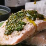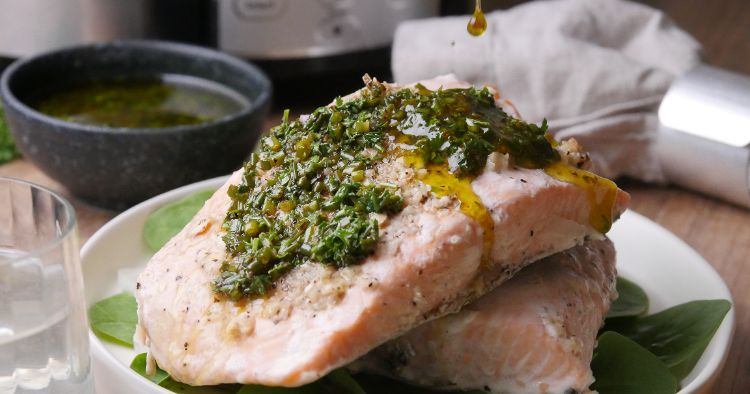 Slow cooking is one of the best ways to cook salmon because the low-and-slow process prevents the fish from being overcooked and keeps it beautifully moist. The recipe below uses this to full advantage by slowly poaching the fish in a bath of wine and aromatics. A salsa made of fresh herbs and olive oil gives the dish an elegant finishing touch.
