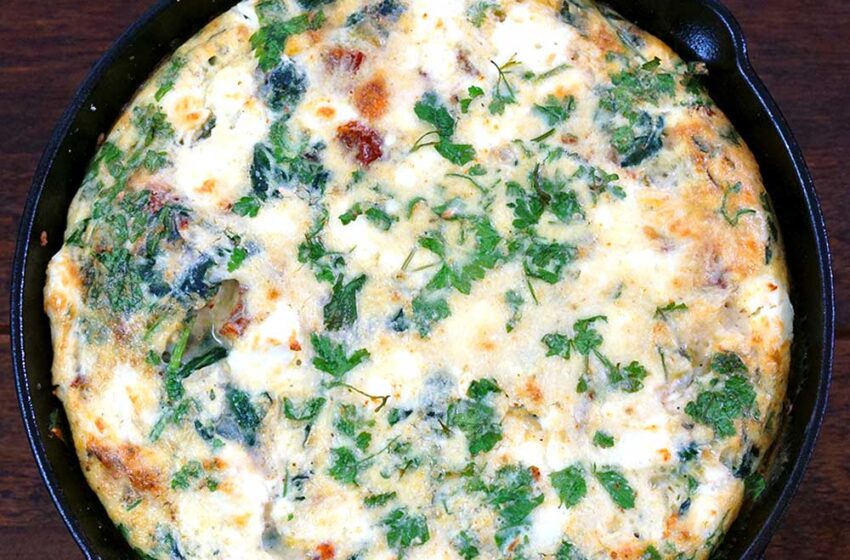 Spinach Frittata Recipe with Sun-Dried Tomatoes, Feta, and Parmesan