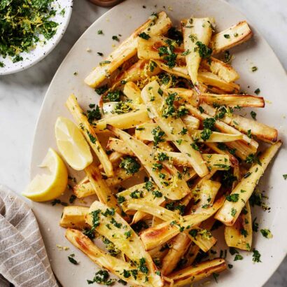 - Serve vegetables warm with a drizzle of olive oil and a sprinkling of fleur de sel. Top with arugula leaves and Parmesan shavings.