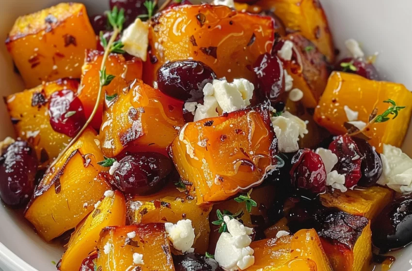 Sweet and Savory Honey Roasted Butternut Squash with Cranberries and Feta