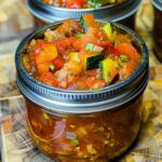 - In a large bowl, combine the diced zucchini, tomato, red onion, red bell pepper, yellow bell pepper, jalapeño, and minced garlic.