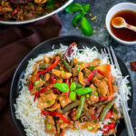 Thai Basil chicken is loaded with veggies, chicken, and encompasses all the delicate flavors that we all love in Thai food. The best part, this incredibly delicious and flavorful recipe comes together in about 30 minutes and is way better than takeout!