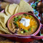 - If desired, top with sour cream, shredded cheddar cheese, chopped scallions, and/or a scoop of white rice.. All that is optional and is wonderful without any of it. Can be served with tortilla chips instead of soup crackers.