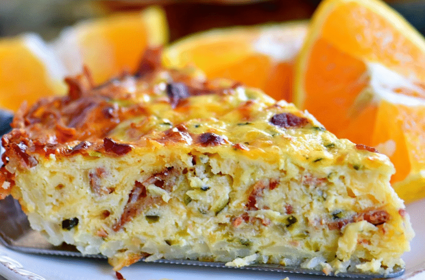 Zucchini Quiche with Bacon and Hash Brown Crust