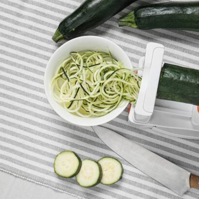 - Heat oil in a large ovenproof nonstick skillet over medium heat. Add garlic and sauté for 1 minute. Add red bell pepper and zucchini. Cook for 2 minutes. Pour egg mixture over vegetables and cook over medium heat without stirring for 3 minutes.